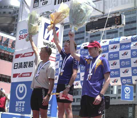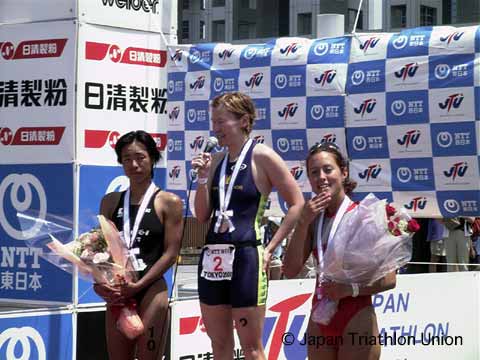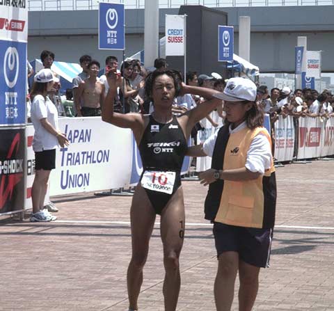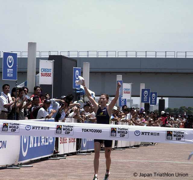 | 優勝は男子がクリス・ヒル、女子がリナ・ヒル NTTトライアスロンジャパンカップ第4戦、2000ITUトライアスロン・ワールドカップ東京港大会 が7月16日(日)、東京都港区台場の臨海副都心トライアスロン特設会場で行われた。東京で初めて行われたITUワールドカップであり、シドニー・オリンピックを2ヶ月後に控えていることもあり、最終調整をかねて世界各国より男女有力選手34名が出場し、白熱したレースが展開された。 男子のレースを制したのは、終始レースをリードしてきたクリス・ヒル(AUS)。2位には、マイルス・スチュアート(AUS)が入り、オーストラリア勢がワンツーフィニッシュを飾った。3位にはクリス・ゲメル(NZL)が入り、日本人最高は5位に入った西内洋行(チームテイケイ)だった。 引き続き行われた女子は、ベテラン、リナ・ヒル(NZL)が貫禄の優勝。2位には99年日本選手権覇者の小梅川雪絵(チームテイケイ)が4月のITUワールドカップ石垣島大会の細谷はるな(ニデック)と同じく日本人最高位でフィニッシュ。3位にはスペインの新鋭、ピラール・イダルゴが入った。その他日本勢は、中西真知子(チームNTT東日本)が4位に入る健闘。シドニー・オリンピック日本人選手代表の平尾明子(NTT東日本・NTT西日本)は6位という内容だった。 【男子】クリス・ヒル、灼熱の東京を制す! お台場海浜公園を2周回するスイムをトップでフィニッシュしたのは、ヒル、西内を含む約20人。バイクに入ると先頭集団は15人に形成され、小原工(チームテイケイ)、福井英郎(シャクリー・FILA・GT・グリーンタワー)の日本代表も集団の中心に位置し、レースは展開された。ブレント・フォスター(NZL)がバイクを後続に34秒差をつけてフィニッシュしたが、ランに入るとヒルとスチュアートの一騎打ちとなった。 灼熱の中、ラン勝負を制したヒルが1時間48分23秒で見事優勝を飾り、2位には同じくオーストラリアのスチュアートが入った。注目の日本人選手は、西内の5位が最高で、7位に小原、11位に菊地次郎(山形大学)が入る結果だった。西内、小原につぐシドニー・オリンピック日本代表の福井は15位に終わった。 優勝したヒルは、「ワールドカップで初優勝できたことが一番うれしい。暑い中でのレースは嫌いではないので、この結果が出てよかった」とコメントした。また、日本人最高の5位に入った西内は「応援してくれる人達のためにも頑張ろうと思った。表彰台に上がれなかったことは悔しいが、結果には満足しています」と語った。 【女子】ベテラン、リナ・ヒル、貫禄の優勝! シドニー・オリンピック日本代表の細谷、庭田清美(シャクリー・FILA・GT・グリーンタワー)が欠場し、10名でのスタートとなった女子は、イダルゴ、ピップ・テイラー(AUS)がトップでスイムをフィニッシュ。 15秒遅れで中西、ヒル、小梅川が追う展開となった。バイクに入ると4週目に後続の3選手が先頭に追いつき、そのまま5人でバイクをフィニッシュし、優勝争いは最後のラン勝負になった。小梅川、イダルゴが引っ張る展開となったランだが、2週目にヒルが2人を抜き去りトップへ。そのまま2時間03分03 秒のタイムで優勝した。「とても暑かったが、コースがきれいで楽しんでレースが出来た結果だと思う」と喜びのコメントを残した。 2位には97年の蒲郡大会での庭田、そして今年4月の石垣島大会での細谷につぐ、ITUワールドカップ日本人選手最高順位で小梅川が入った。「体調も万全ではなく、後半バテたが、観客の声援でこの結果を残せたと思う」と語り、表彰台での笑顔が印象的だった。 他の日本人選手では、中西が4位に入り、シドニー・オリンピック日本代表の平尾はスイムでの遅れが最後までひびき、6位に終わった。 当日の模様